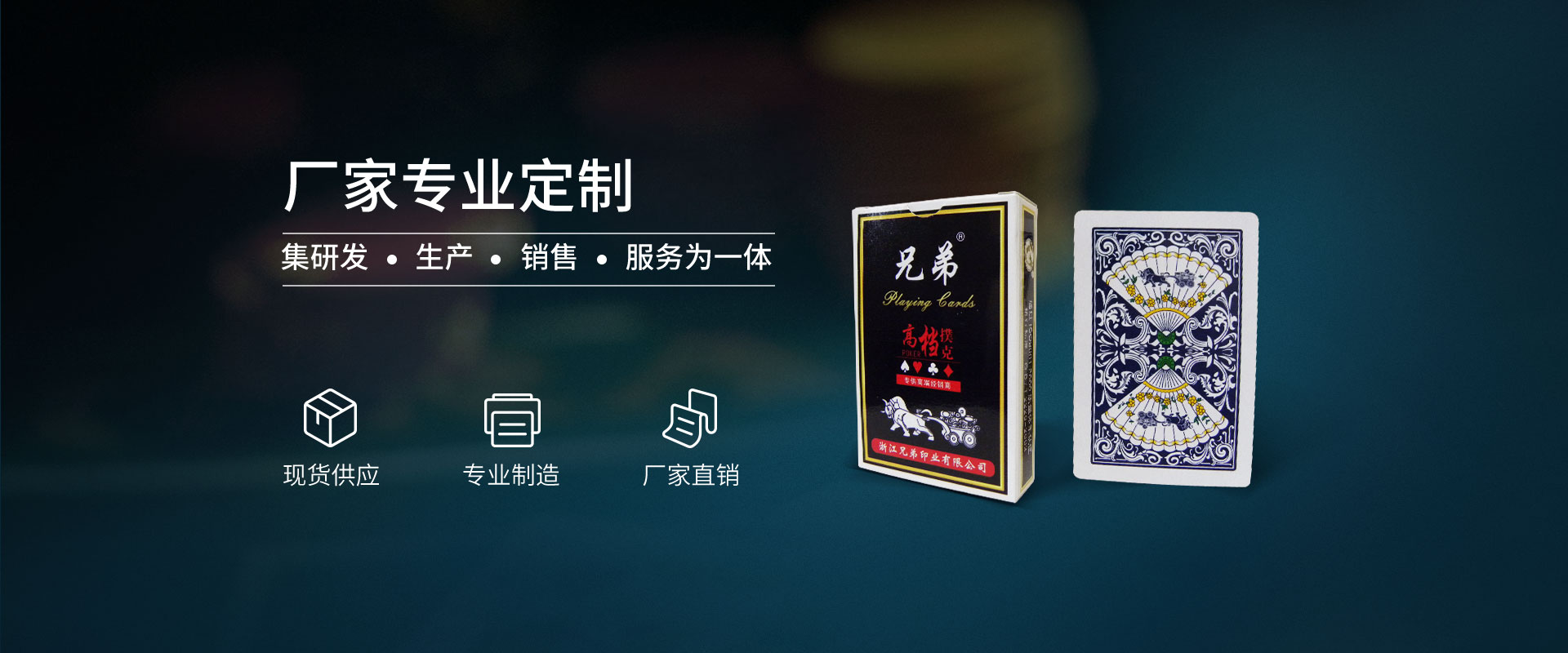 浙江兄弟印業(yè)有限公司是一家生產(chǎn)中、高檔娛樂撲克、禮品撲克、廣告撲克的專業(yè)撲克牌制造企業(yè)。它位于風景秀麗的“溫泉之鄉(xiāng)”武義縣工業(yè)區(qū)發(fā)區(qū),金麗溫高速公路武義段出入口處。